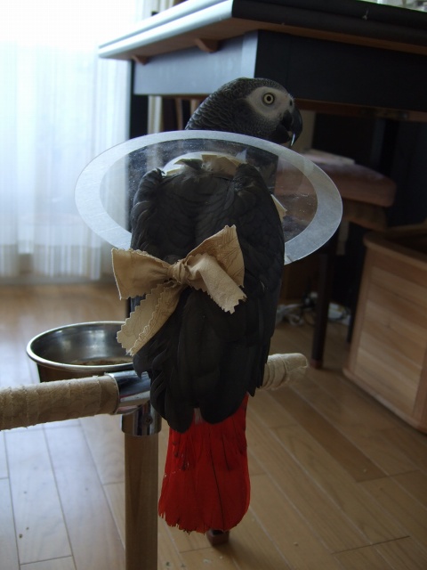 で、翼広げて齧り木コーンに傷口こすり付けてたやろ!
