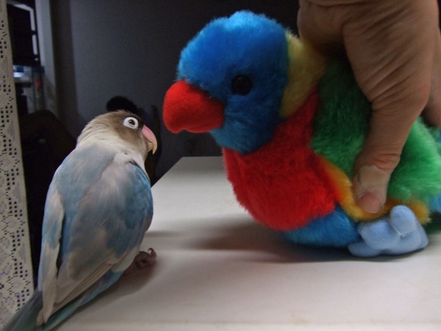 ウチの鳥たちだったら・・・・ぜったい後ずさるわぁ(笑) あーぽんはちょっとビックリ顔だけどぴこさんは本当に無心の境地だねぇ(^-^*) やっぱり嫌いな色とか形とかあるんだね。 む〜ゆんはベージュの大きいの嫌いです。 デカイまな板が通ると「ゴゴゴー」って音出して威嚇するよ〜。 お仕事忙しいみたいだけど、夏本番です。 どうかご自愛下さいな〜☆彡 Re:度胸ある〜!