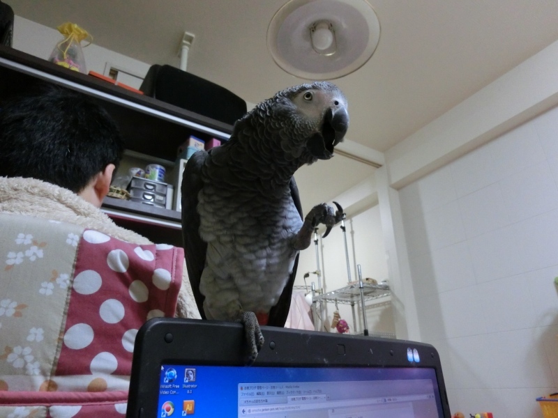パソコンの上でまったり。