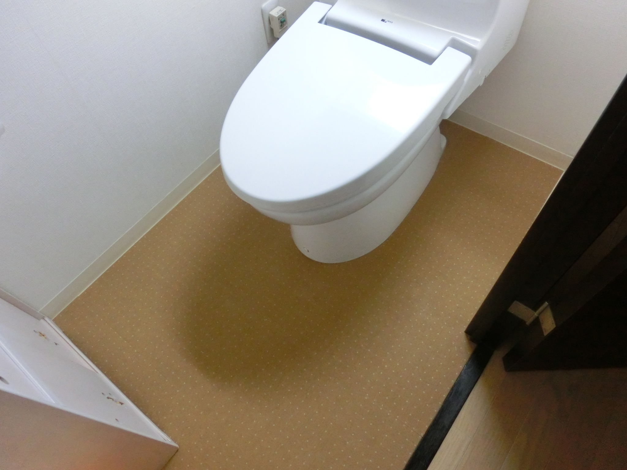 トイレの床をようやく張り替えました。と言ってもリフォームとかではなく、貼ってはがせる25センチ角くらいのマットを貼っただけですが。