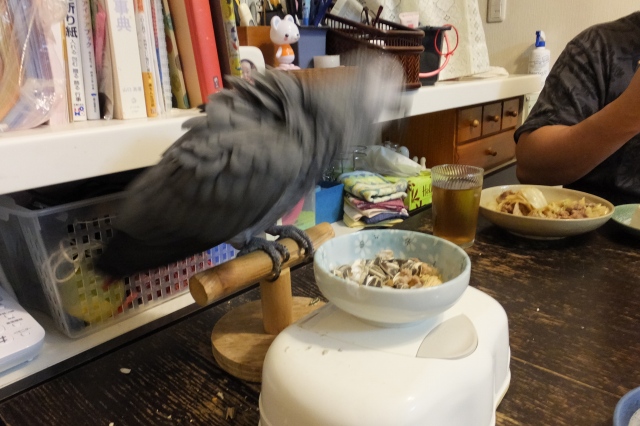 長かったわ~。 ほんと何事もなく終わってくれてよかったけど。 あーぽんの場合、無精卵だから抱卵中はたいして心配してなかったんだけど、産卵時のハラハラはもう勘弁してほしいわ~。 別荘に籠ってる間は部屋が全然汚れなくてよかったんだけど、あーぽんが戻ってきた途端、あちこちに 爆弾が~~。一気に掃除が大変になりました(^^; ご飯ね。前は机の横にスタンド置いて一緒に食べてたんだけど、Kさんが生まれてから自分も一緒に机で食べたくなったらしくてねぇ(笑) それでこういうスタイルになりました。 |