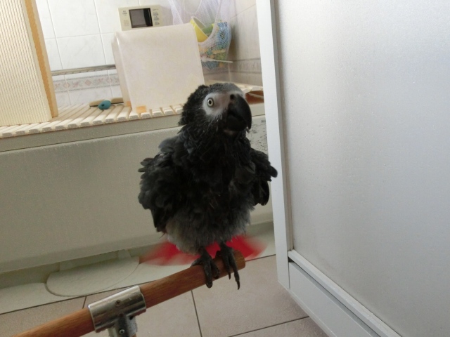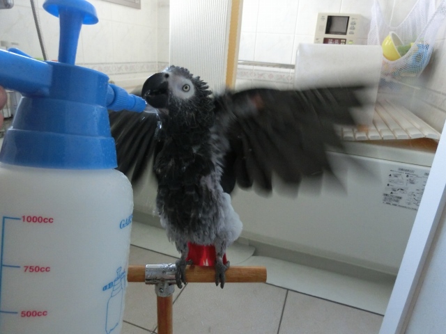 あーぽんはこっちに戻った翌日、盛大に水浴びしてご機嫌でした。