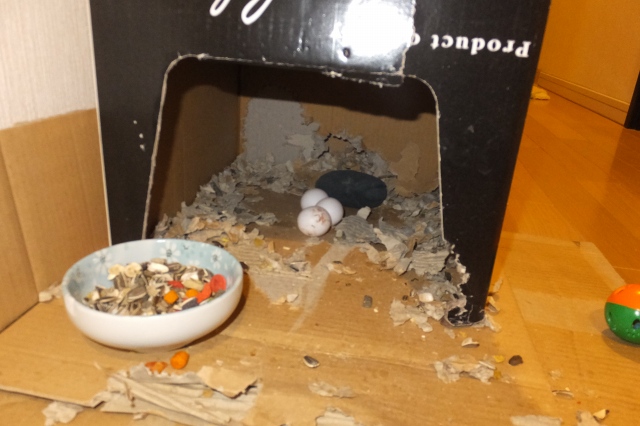 あーぽんさんは2か月ほど前すごい多尿になりまして、鳥友さんのお話からどうも発情してるっぽかったので旦那にあまり構わないように注意し、そのときはなんとか収まりました。