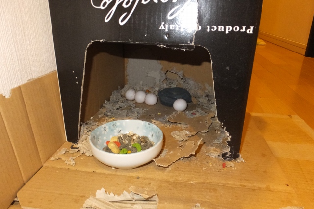 夜になると落ち着いてきて、ご飯も水も自分で食べてくれるようになりました。