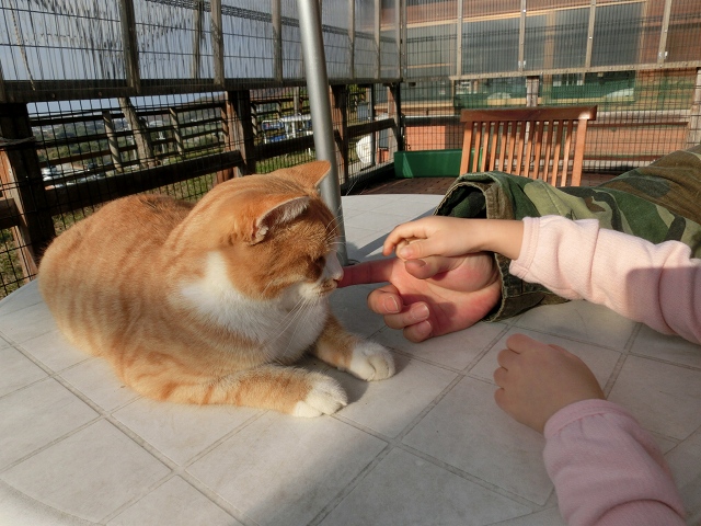 またもやお久しぶりです。 いつまでも景気が悪くてなんとも気持ちが暗い毎日ですが、なんとかがんばって生きてます~(^^; またもや つめやさんのところで買ってしまいました。酒屋さんの前掛け~。 うちの実家、昔作り酒屋だったもんで、父親がいつもこういう前掛けしてたから、なんか懐かしくて・・・。 Kさんは見た瞬間「あーぽんちゃん!!!」と叫んでました。わかるのね。 いいでしょ~! でも実はあんまりしないんですよね、私。なのになぜか2着目~(笑) いや、しようと思うんですが、バタバタしてるとつい忘れてしまうんです。 でも今回は、Kさんに「これ付けてお料理して」とか言われるので、ちゃんと使ってます^^ 一緒の写真を撮ろうと思ったのに、黒くて大きくて四角いものが苦手なあーぽんさんは、これが限界でした(^^; あーぽんは元気にしております。 たまに、Kさんと一緒に公園へ行って遊んだりもします。 あーぽんの大好きな紙製のピニャータ。結構高いのよね、これ。 見た途端、かぶりつきます^^ あーぽんは元気なのですが、私は最近、週一くらいで本気噛みされるので、かなり凹んでます あんまりかまえないのが原因なんだろうけど、ここのところあまりにも噛まれ過ぎて、ちょっと怖くて手が出しづらいのもあります・・・。 キズが治りきらんうちにまた新しいのができる・・・。ううううう。 だいたいいつも噛まれるのは、Kさんの寝かしつけでお布団に入ってるときなので、縄張り意識が一番の原因なんやろうけど、そこはあんたの縄張りとちゃうはずやっ!!! でかい顔すんな~! 怖いんじゃっ!! 話変わりますが、先週末、車で1時間ほどの牧場へKさん連れて行ってきました。大好きな動物がいっぱいでKさん大興奮。 きゃ~~~! ひよこひよこひよこ~~~! オカンはひよこを見ると壊れるので、Kさん若干引き気味でした(^^; だってかわい~んだもん。ふわふわなんだもん。 Kさんはポニーに乗りました。でかくなったでしょ。3歳4か月です。 猫の癒し館。ねこねこねこ~~~! この子、小池に似てる。あの子が元気に育ってたら、こんな感じかな。 今まで行ったどの施設より、猫が人懐っこくて可愛かったです 閑散期に人を呼ぶための割引チラシがポストに入ってたので、全く期待しないで行ったのだけど、動物がみんなよく懐いてて可愛かったし、なかなか楽しめました。大事にされてるんだろうな~。みんなきれいにしてもらってたし。 また行くかも^^ PR |