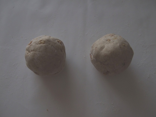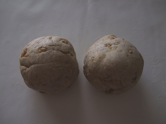 今日はライ麦パンを焼きました~ ![]() 以前、百貨店で出張販売していたパン屋さんで買ったライ麦パンが とてもおいしくて気に入ったのですが、 さっさと袋を捨ててしまったのでどこのお店がわからずじまい。 他のお店でいくつか買っても、なんか今いち・・・。 私、本場のライ麦パンは苦手なのです。 すっぱすぎてぼそぼそしてるように感じて・・・。 日本人の口にあわせたものの方が私には合うんです。 だって、この年までどっこも外国行ったことない 日本しか知らない日本人 ですから~~。そんなわけで、自分で焼きます! これは何度か作ってるので、気楽です~。 またもホームベーカリーに生地をおまかせしまして・・・。 二つに分けてまるめて15分のベンチタイム。 おっきくなったよ ![]() 平らに伸ばして畳んで整形。