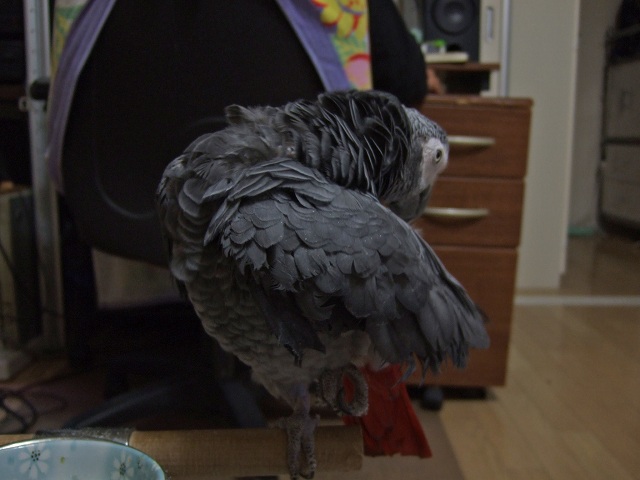 もともとあーぽんはダウンのみを毛引くコだったので、一番毛引きが酷かった時期でも、表から見る限り全然わかりませんでした(^^;
