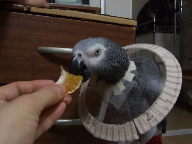 モンゴル様にはほんとにお世話になりましたわ~。 布巻いておかないと、また翼の内側怪我するからねぇ。 これ1コ作るの結構面倒なのよ~。 |
